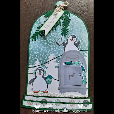 De pinguïn lag nog los op mijn bureau en het leek mij wel leuk als hij met een vlaggetje haar tegemoet zou juichen als ze de envelop open deed ;)